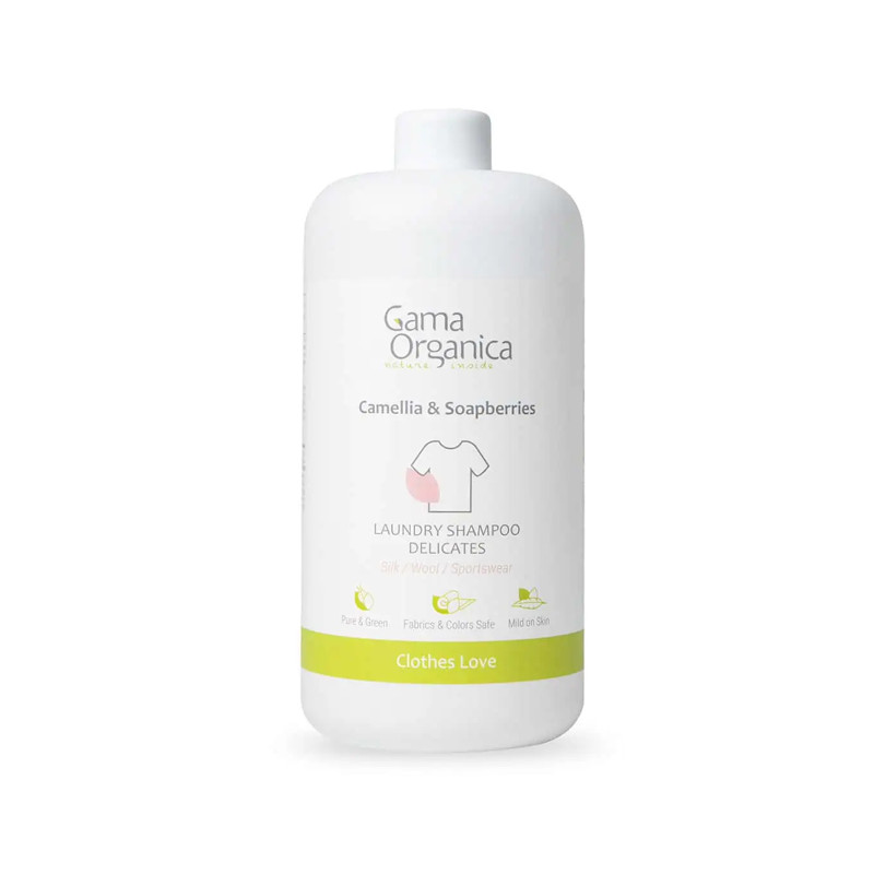 Направен с натурални сапонини от Сапунени ядки и Камелия, екстракт от Алое Вера и чисти етерични масла. Растителните сапонини имат меко, но същевременно ефикасно изпиращо действие. Екстрактът от Алое Вера се грижи за деликатните тъкани, като овлажнява нишките и запазва еластичността им. Това прави тъканите меки и удължава живота им.