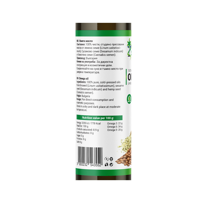 ОМЕГА масло е студено пресовано и не съдържа допълнителни вещества, поради което може да бъде добавяно към салати, студени ястия, десерти и др.