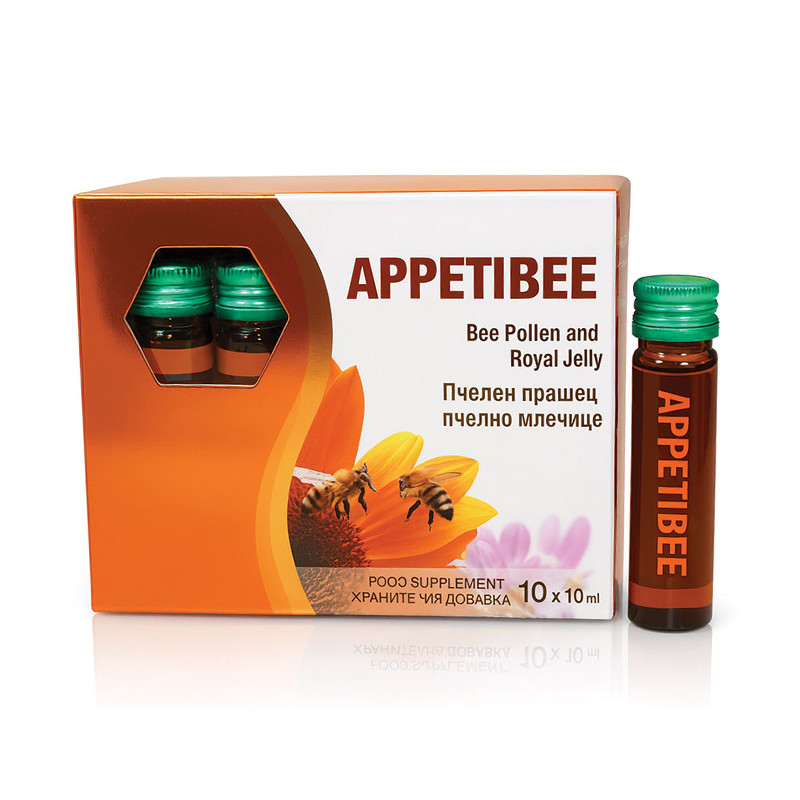 AppetiBee е вкусна течна хранителна добавка за възрастни, която съчетава силата на пчелното млечице и прашеца, за да подпомогне естественото производство на енергия и да стимулира апетита.