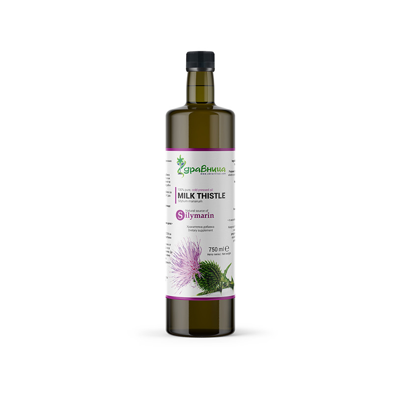 100% чисто, студено пресовано масло от семена на бял трън (Silybum marianum).