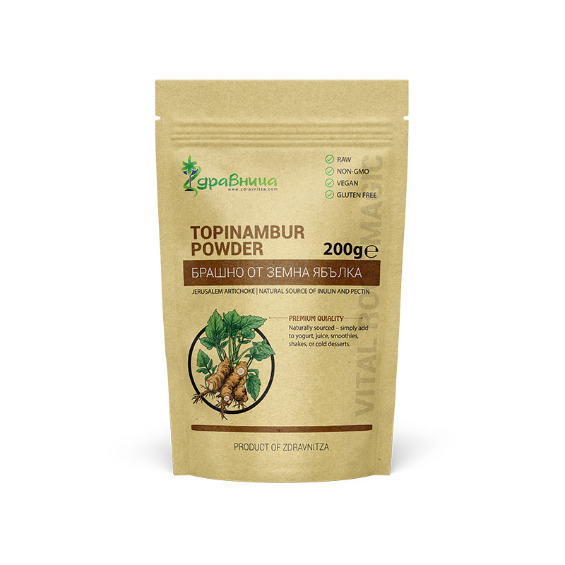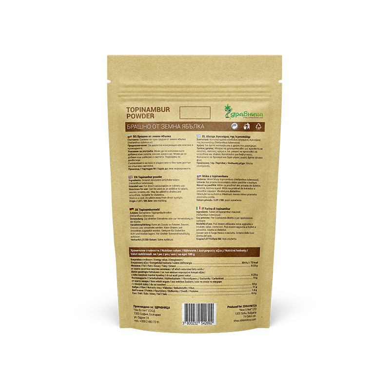 Съхранявайте на сухо и хладно място без пряк достъп на слънчева светлина. Брашното от земна ябълка е хигроскопично! Пазете от влага!