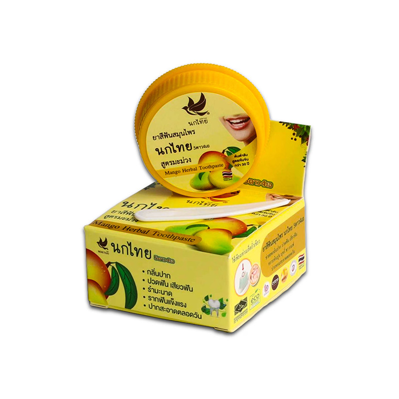 Концентрираната избелваща паста за зъби NOKTHAI е натурален продукт от тайландски билкови екстракти с добавен екстракт от манго за по-бели зъби и свеж дъх. Без агресивни химикали, осигурява нежно, но ефективно ежедневно почистване.