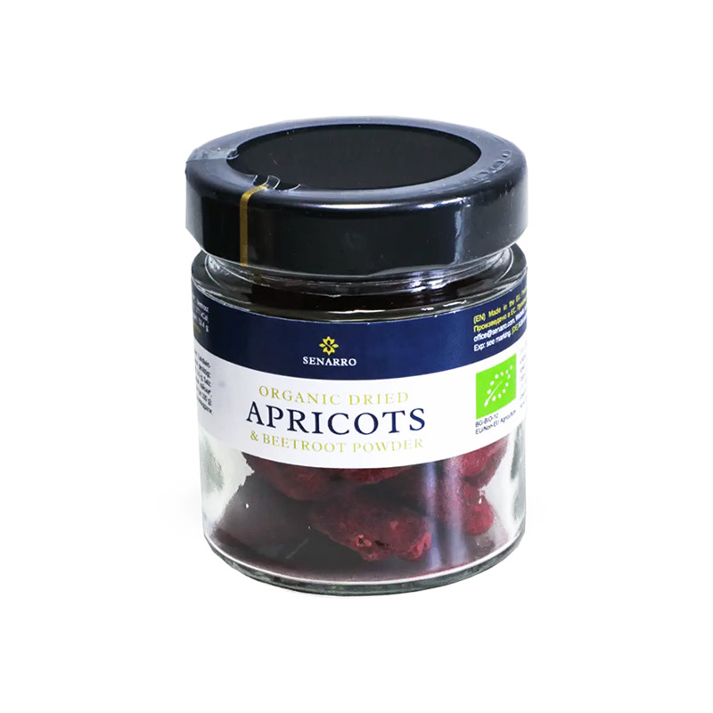 Открийте хармонията между слънчевата сладост и земната нежност - сочните БИО кайсии на Senarro са деликатно покрити с фин прах от червено цвекло.