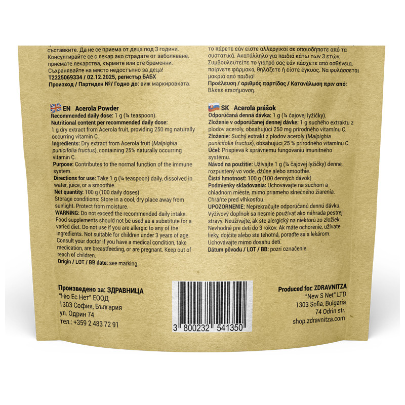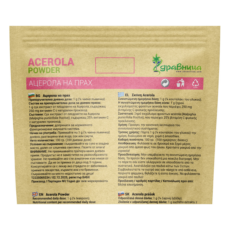 Ацерола на прах на "Здравница" е регистрирана хранителна добавка от Българска агенция по безопасност на храните (БАБХ):