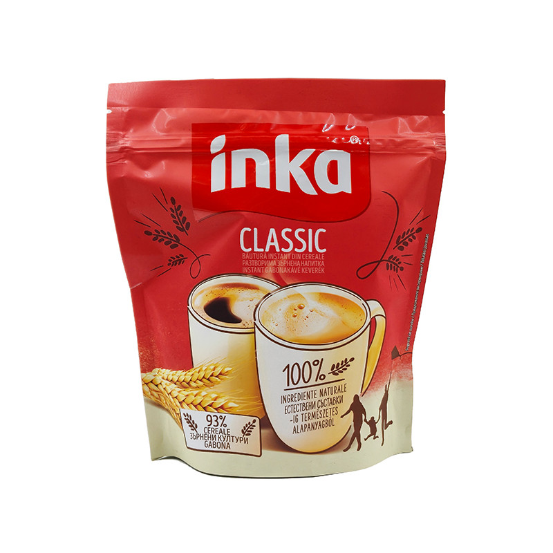 Inka Класик е натурална, разтворима напитка от ечемик, ръж и цикория. Балансиран аромат и мек вкус, който напомня на истинско кафе. Не съдържа кофеин.