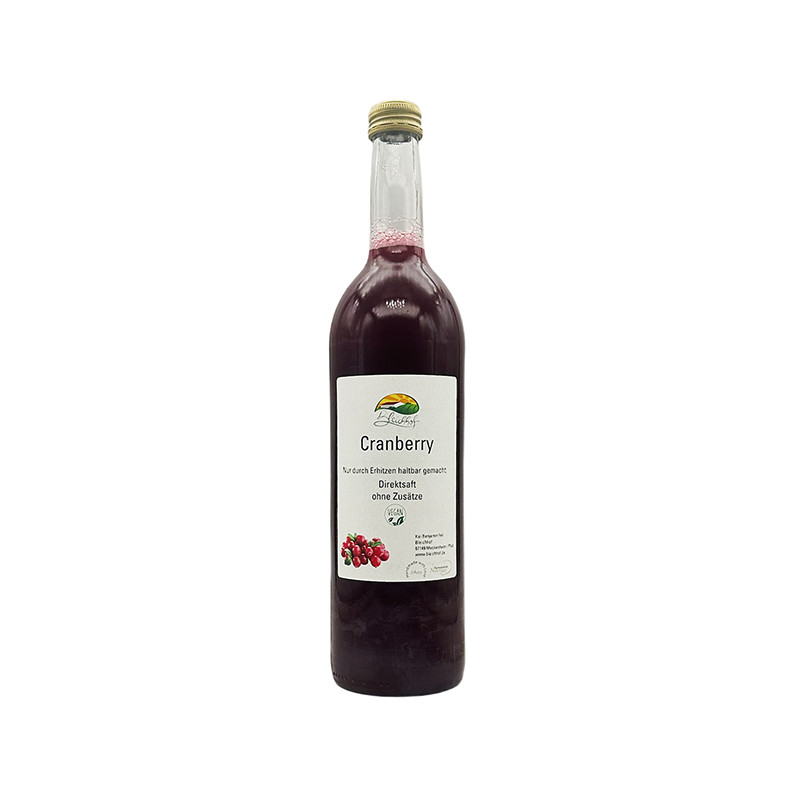BIO certified cranberry juice. Preservatives Free! Sweeteners Free! Cranberry fruits have a diuretic and antibacterial effect.
