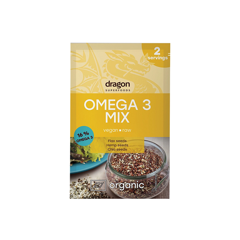 Omega 3 Mix is a blend of organic seeds naturally rich in Omega-3 fatty acids. The combination of crushed chia, flax and hulled hemp seeds gives the mix a light and pleasant nutty taste. Omega 3 Mix is suitable for adding to smoothies and sprinkling on salads.