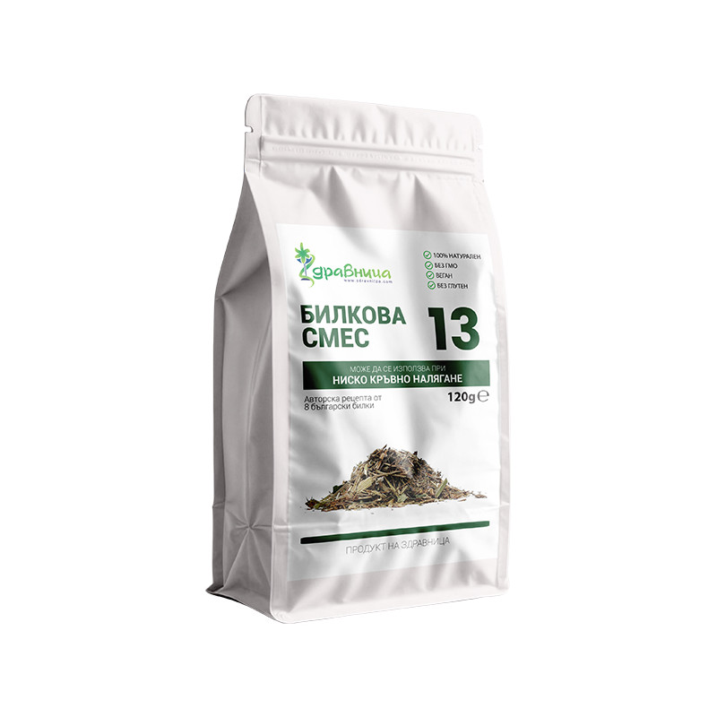 Herbal Blend 13 of "Zdravnitza" is composed of 8 Bulgarian herbs that traditionally used in cases of low blood pressure (Hypotension).