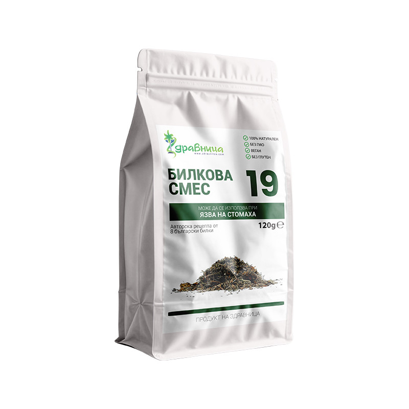 Herbal blend 19 of "Zdravnitza" is composed of 8 Bulgarian herbs that can be used as an aid in stomach (gastric) and duodenal ulcer.