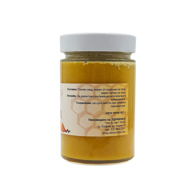 "Curcumed" by "Zdravnitza" is a traditional, natural product that contains pure, Bulgarian honey, turmeric, and black pepper. "Curcumed" can be found under other names such as "Golden Honey" or "Turmeric Honey".