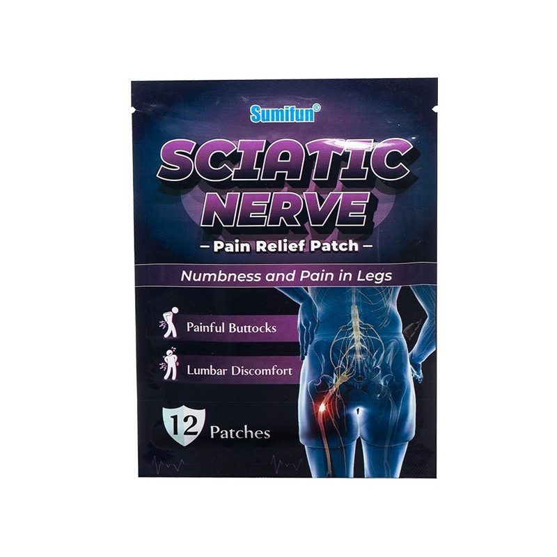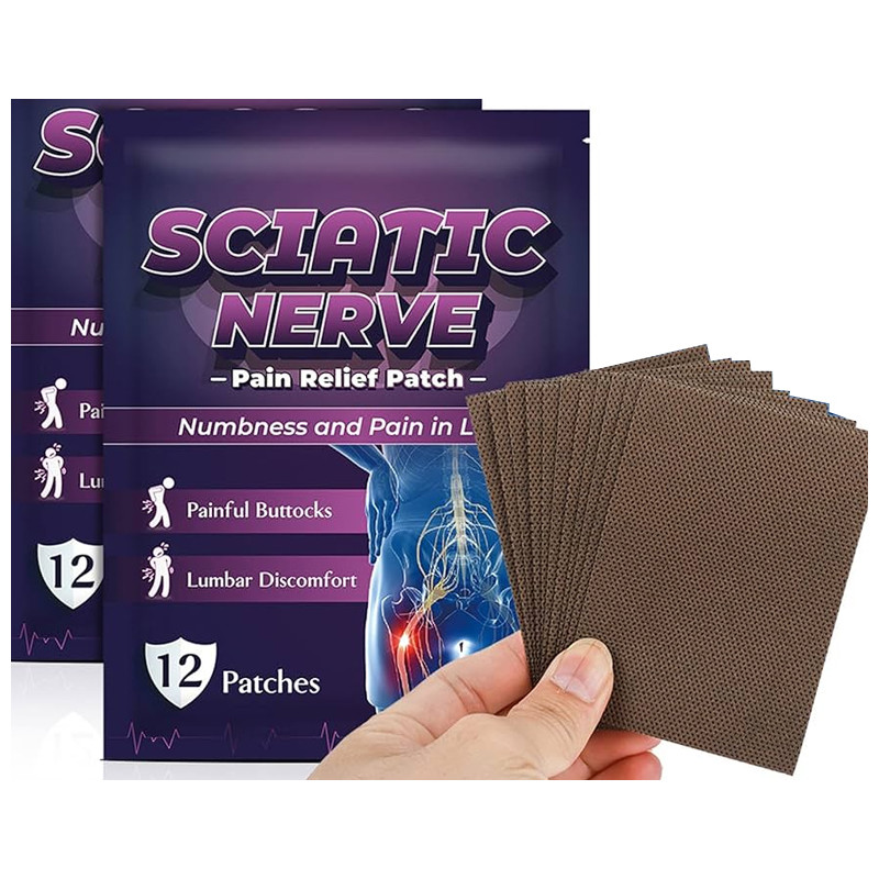 Patches with micro-spherical elements designed to apply gentle pressure to selected acupressure points along the sciatic nerve pathway.