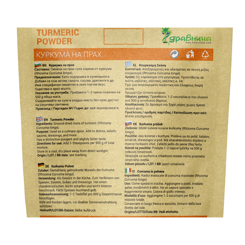 Turmeric promotes the work of the stomach and liver, increases the activity of the stomach flora, improves digestion, purified blood, powerful antioxidant.